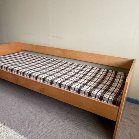 En enkel seng med ny springmadras (ny pris 2998 kr - nu 998 = Samlet pris 1395kr for seng og madras.