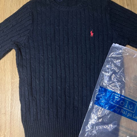 Polo i strik med lange ærmer fra Ralph Lauren str. XS. Er brugt, men ingen huller. Kan sendes, køber betaler fragten.