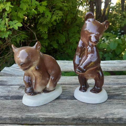 Porcelæn, Figur: Bjørneunge, brun, USSR-vintage, Lomonosov, 10 cm høj.