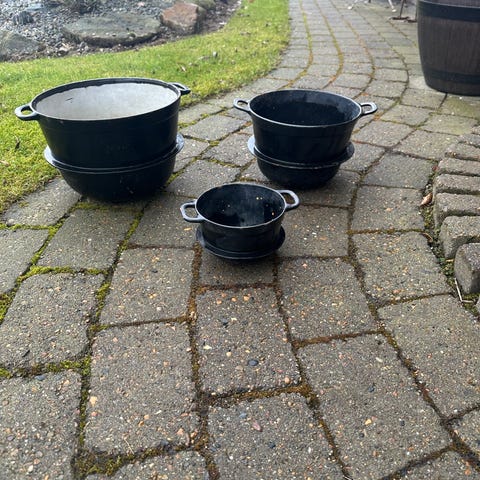 Ældre flot sort emalje jerngryde.