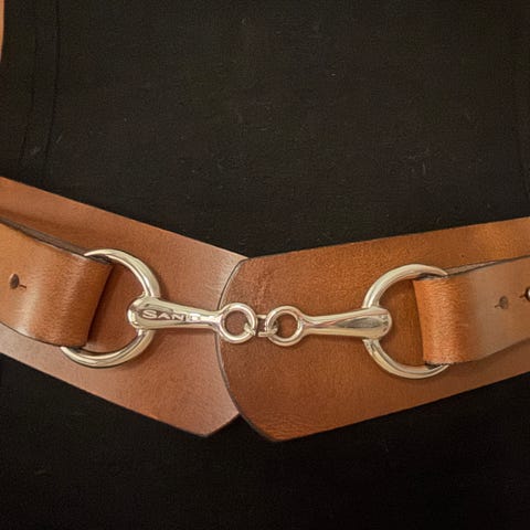 Rigtig fin Dame læder bælte i str. 85. Talje måls lukning fra 80 op til 90 cm. Længde ialt ca. 100 cm. Brede - knap 4 cm. Fremstår som ny. Se alle fotos + mål. Må afhentes eller sendes forsikret med DAO + porto. Se gerne mine andre annoncer - mere kan købes med. Har bla. flere bælter