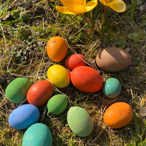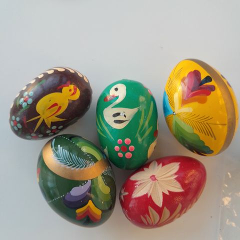 Flot og stort håndmalet påskeæg i træ, længde ca. 10 cm., fremstår i pæn brugt stand - se fotos.