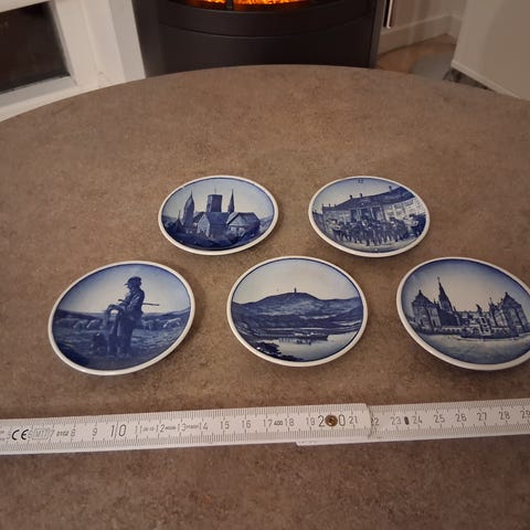2 små platter, Royal Copenhagen, Kbh. Rådhus, og Roskilde Domkirke. 8 cm., sælges