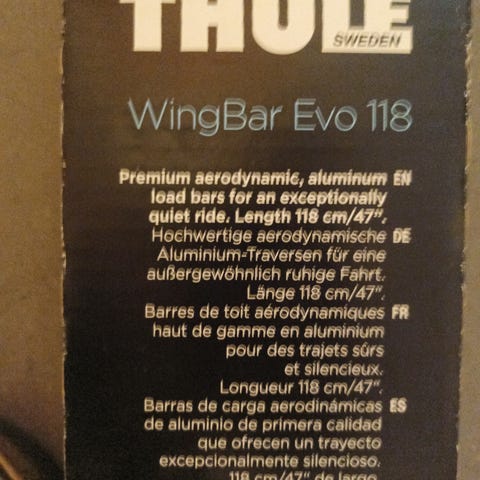Thule WingBar tagbøjler med fodsæt 753, har været brugt på Kia Ceed. 118 cm, fix point montering
