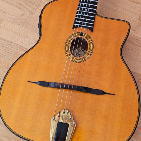Jazzguitar, andet mærke D'Aquisto Centura, D'Aquisto archtop. Fin Gibson l-5 størrelse jazzguitar. Fuldt akustisk. Svært at gå af med:( Men jeg spiller kun med forstærkning nu.