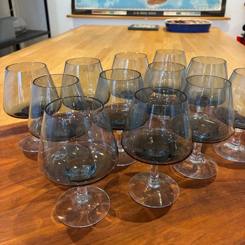 12 Øl glas 100 stk. 7 snaps glas 30 kr. stk. 5 Likør 50 kr. (Champagne skåle solgt)