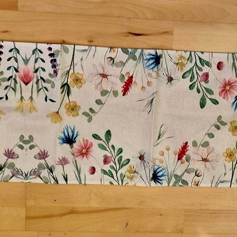 Dug, Bordløber, Laksefarvet dug med flot kant og indsat mellemværk - farven er svær at fange
