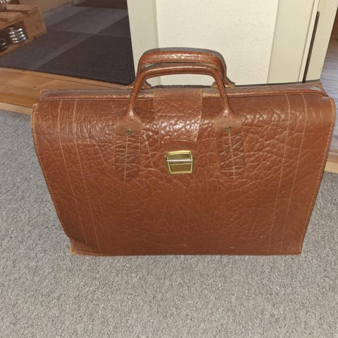 Klassisk dametaske med mange rum, i kraftigt brunt læder.