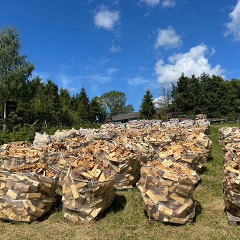 2 rummeter. Tørt gran og fyr, savet og kløvet i 20-25 cm.