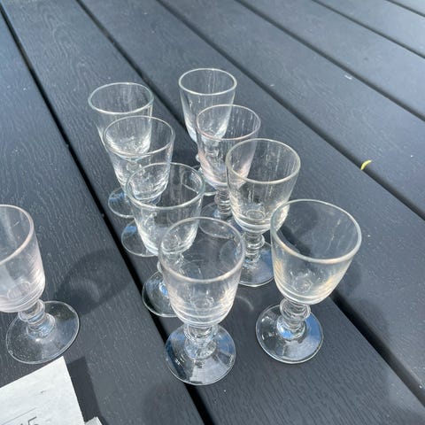 Stort opdrevet ølglas med rundbuet kumme på stilk med knap og stor fod.