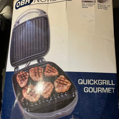 Obh Nordica rigtig fin burger grill brugt få gange søger nyt hjem, hvor den vil blive brugt noget mere. Der medfølger brugerpresse, udstikker og brugsanvisning. Man skal lige sætte en lille underskål/underkop under maskinen for at opsamle fedt. Har mistet den lille bakke der ellers var med. Derfor den billige pris. Maskinen kan også stege andet end burgerkød. Mulighederne er mange så en mini bordgrill.