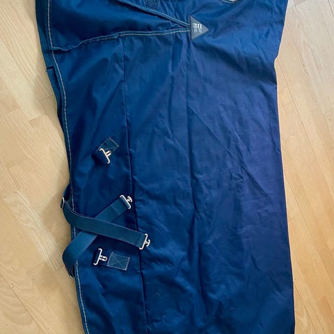 Dækken, Regndækken med fleece foer, Lækkert regndækken med fleece foer fra QHP. Str. 125 cm - 5´5 inches. Farven er mørk rød/bordeaux rød med blå.