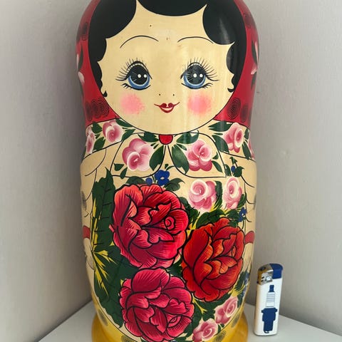 Den store har stofkrop 26 cm. høj med originalt tøj