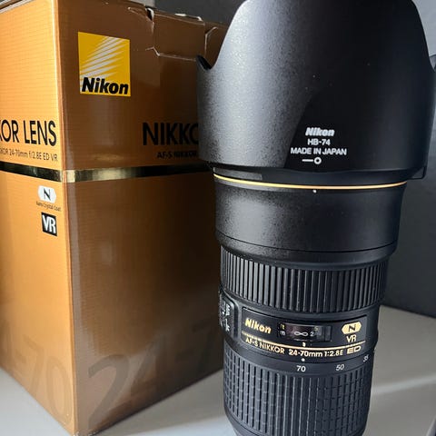 Nikkor AF-S 24-70mm f/2.8 G IF-ED der er fuldstændigt som nyt. Har vel ”skudt” maks. 3000 billeder. Derfor i perfekt stand med original emballage.