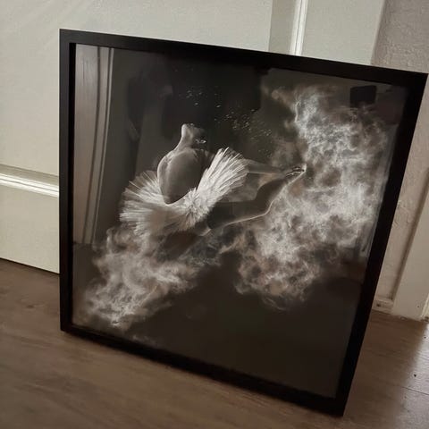 Billede af ballarina med sort træramme og passepartout.