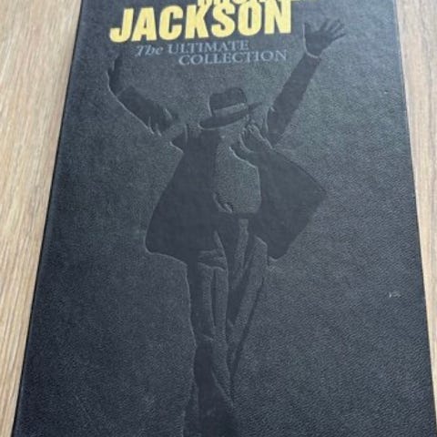 Samling med Michael Jackson CD'er og DVD’er, plus en enkelt blu-ray.
