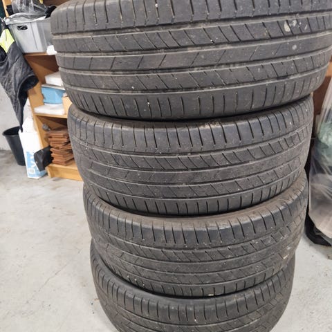 Brugt 1 forår/sommer. Original montering til Kia EV6, dog passer til mange el biler. Meget lydsvag. mellem 5,5 og 7,5 mm mønster tilbage. <<<<<<<