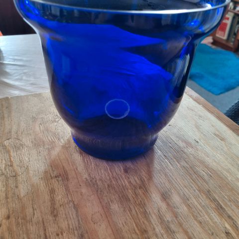 Sød mindre blå glas urtepotteskjuler fra Lyngby glas. Højde 10,5 cm diameter 10 cm.