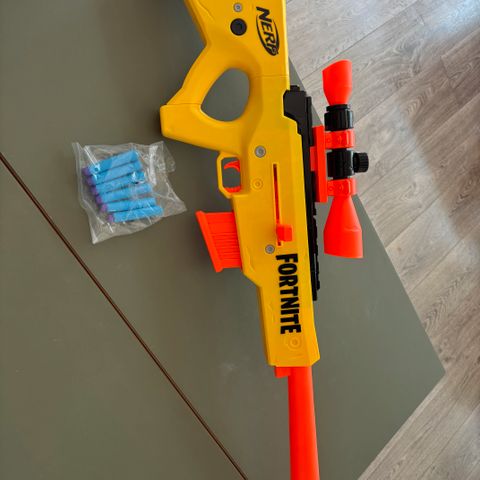 Sælger en Nerf Tactical Shotgun Fortnite i god stand. Kun selve Nerf gunnen følger med, ikke emballagen. Der medfølger alle skud undtagen ét, så du er næsten klar til action!