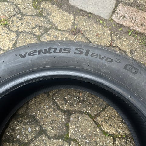 Sommerdæk fra Skoda Enyaq, der har kørt ca. 12.500 km. Der er 5 - 5,5 mm. slidbane.