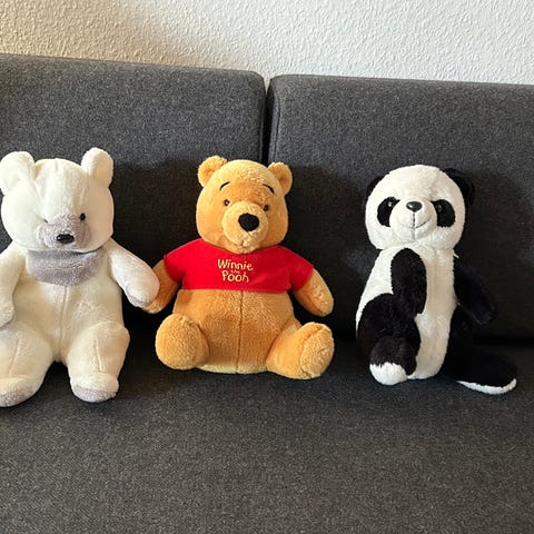 Bamse og hans venner, de tre af dem er hånddukker, 200kr plus forsendelse.