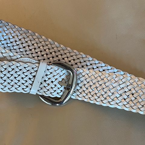 Superfed hofte-bælte i flettet skind med 9 cm rund metalspænde i antiklook.