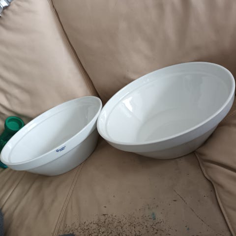 Foto 12-13 Andet stort hvidt dejfad H: 13 x Ø: 35,5 cm til 299,- grundet 1 mikro afslag på kanten og rummer ca 4 L