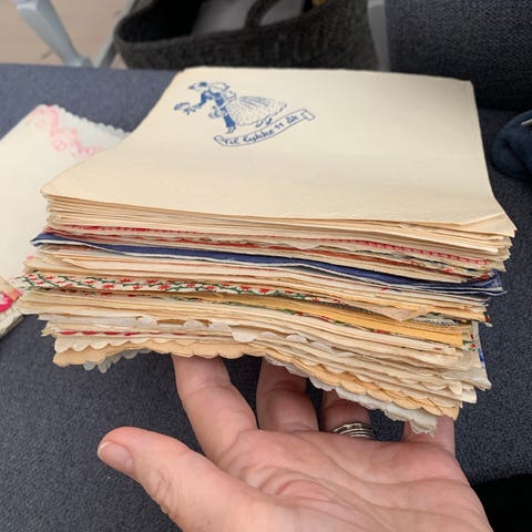 Gammel servietsamling, nogle i fin stand andre mere medtaget af alderen. Billederene viser et udpluk af samlingen, som blandt andet indeholder servietter som passer til flere stel fra royal copenhagen.
