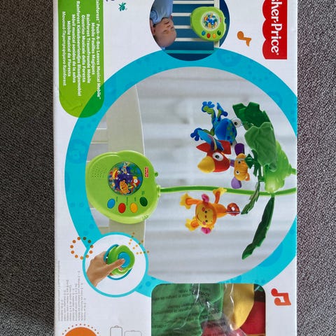 Fin og velholdt uro fra Fischer Price. Til montering på tremmeseng eller ligende. Ophæng medfølger. Radio hvor lys og lyd kan til og fravælges. Kan spille melodier i flere genre fra vuggeviser og jazz til natur og White Noise. Radioen kan afmonteres og bruges seperat som håndholdt.