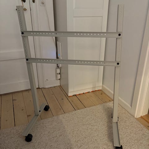 Sælger et flot og minimalistisk pipe Lean pedestal tv stativ i sort. Stativet har et stilrent og moderne design, som monteres direkte på væggen. Der medfølger en praktisk hylde, som giver ekstra opbevaringsmuligheder.