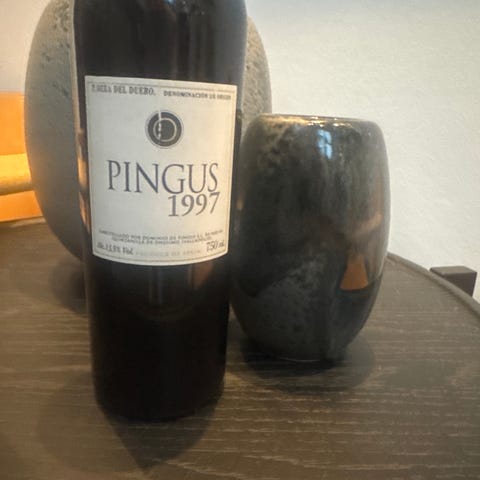 Sælger denne flaske '11 pingus. Den har været opbevaret på 13 grader de sidste 3 år hos mig. Stand og niveau er perfekt.