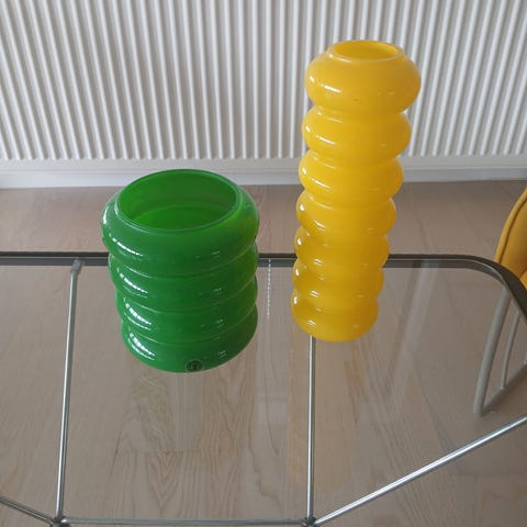 Super smuk vintage IKEA vase i limegrøn og opal hvid glas fra ca. 1980-90`erne.