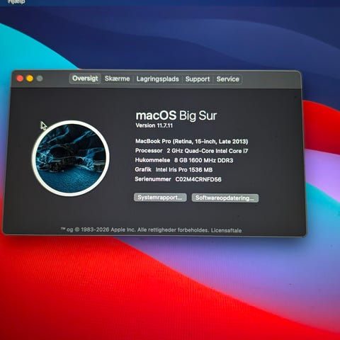 Sælger en MacBook Pro 15" fra 2015. Specifikationer: