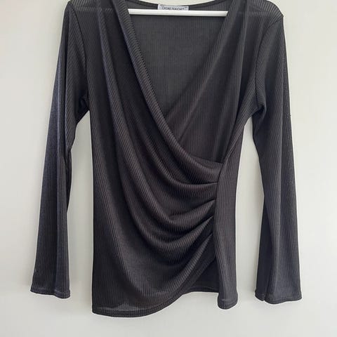 Sort langærmet bluse - basic alike i str one size
