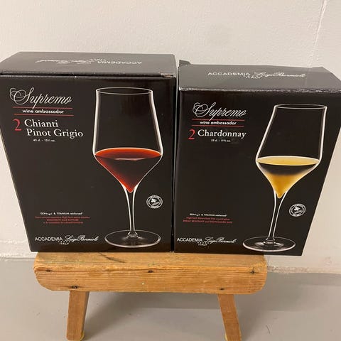 Rødvinsglas og hvidvinsglas 12 stk. af hver. Alessi Mami. Nypris omkring 2.000,-