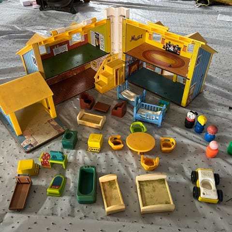 Robust dukkehus til de mindste, brugt men godt, medfølger små figurer og dele.