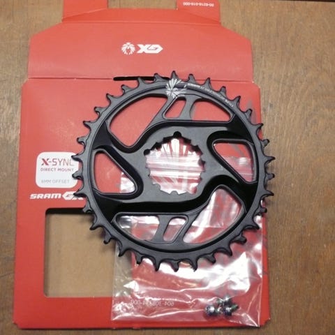 Sælger denne Sram AXS 36T 1x12 klinge inkl. en spider, som er den pedalarmene monteres på.