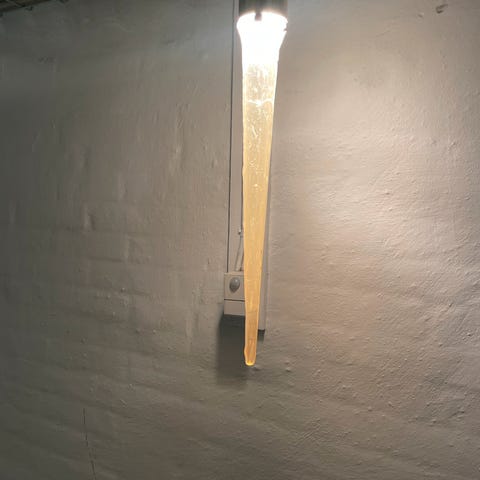 2 store istapper lamper i acryl se billeder for mål og stand kan hentes i svendborg eller sendes for købers regning bliver slået op flere steder så først til mølle