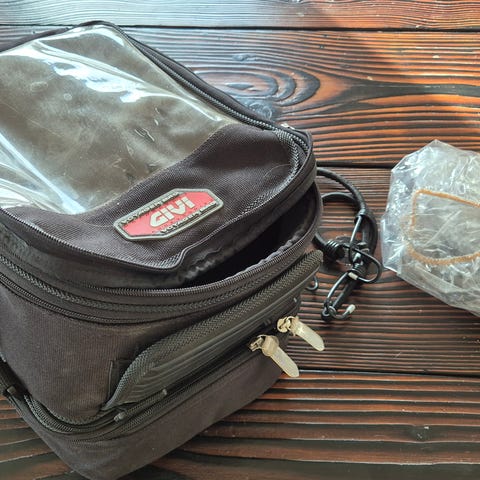 Brugt GIVI EA110B tanktaske - i god stand. 25 liter, med flere mindre lommer. Regncover, skulderstrop og monteringsremme medfølger.