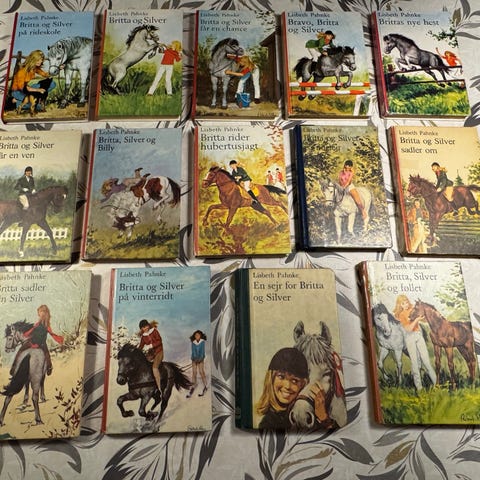 2 bøger i god stand. Sælges samlet 80kr. Britta elsker hesten Rinaldo. Det er ham, hun oftest rider på, når hun er til rideundervisning. Men en dag bliver Rinaldo kørt ned. Britta er ulykkelig. Hun ved ikke, om hun nogensinde skal blive glad igen. Men så møder hun sit livs kærlighed, ponyen Silver. Britta er ikke i tvivl. Hun og den sprælske gråskimmel med de dejlige øjne skal være et makkerpar...Britta-bøgerneBritta er en vaskeægte hestepige. Hun elsker at være i stalden, og mærke vinden tage i håret, når hesten sætter i galop. Serien er for børn og unge, der er tossede med heste og livet i stalden.