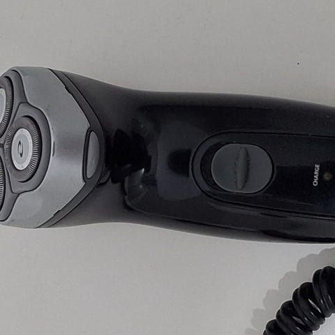 Sælger denne Vintage T9 barbermaskine, der kombinerer stil og funktionalitet. Maskinen har et elegant design i sort med gulddetaljer og en skridsikker overflade, der giver et godt greb.