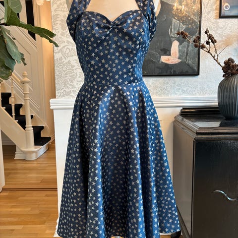 Kjolen har et flot fald og passer str 38-40. Den er foret. Polyester.