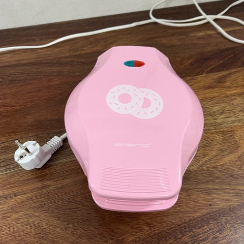 Clatronic Donut Maker i gul farve med plads til at bage 7 donuts ad gangen. En elektrisk køkkenmaskine designet til at bage små donuts. Enheden har en indikatorlampe for strøm og opvarmning.