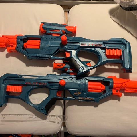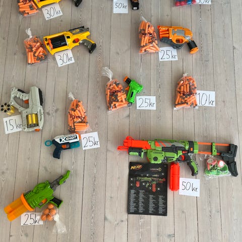 2 nerf guns og én af et andet mærke men bruger samme slags skud.