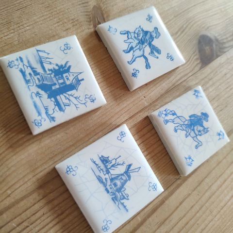 Antikke Aluminia klinker ( fra den kongelig porcelænsfabrik) sælges, ingen skår. Der er lidt puds på bagsiden som er nemt at fjerne. Måler 32cm x 48cm. Er fra før 1965 der er vores hus fra og de hang på væggen da vi købte huset. De skal hentes på adressen