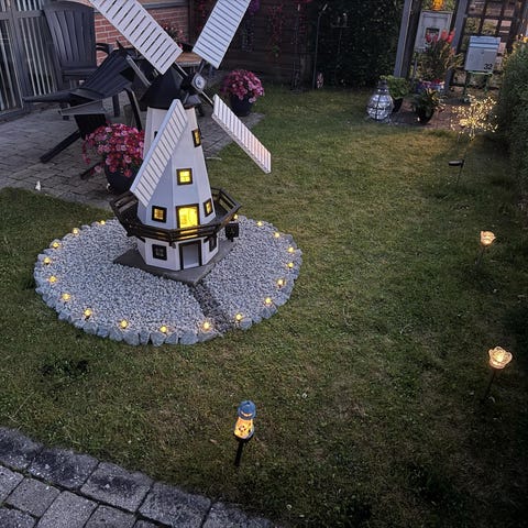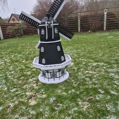Vindmølle med blomsterkasser, fuglestand m.m.