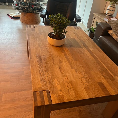 Massiv sofabord i lys eg, rustfrit stålstel meget velholdt.