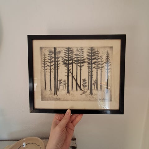 Flot motiv med den 4 - mastede skonnert Gunn, reproduktion. Fremstillet for DLH i meget begrænset antal. I god stand, bag glas, med træramme. Mål 43x54. Rammemål 58x68.