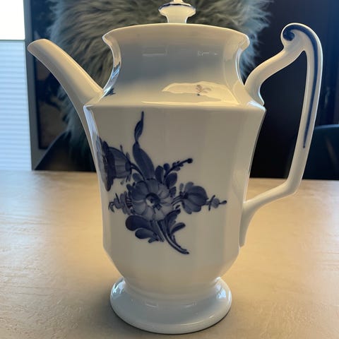 Kaffekande Blå Vifte Royal Copenhagen højde uden låg 16 cm + en sukkerskål der er limet i toppen