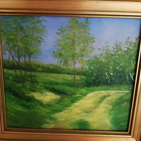 Lille maleri på træplade